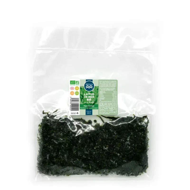 🌿 MeersalatUlva lactuca) ist eine grüne Meeresalge, die im Atlantischen Ozean weit verbreitet ist und das ganze Jahr über geerntet wird. Frisch ermöglichen ihre flexiblen Blätter die Zubereitung von Wraps und das Einwickeln von Gemüse oder anderen Zubereitungen.