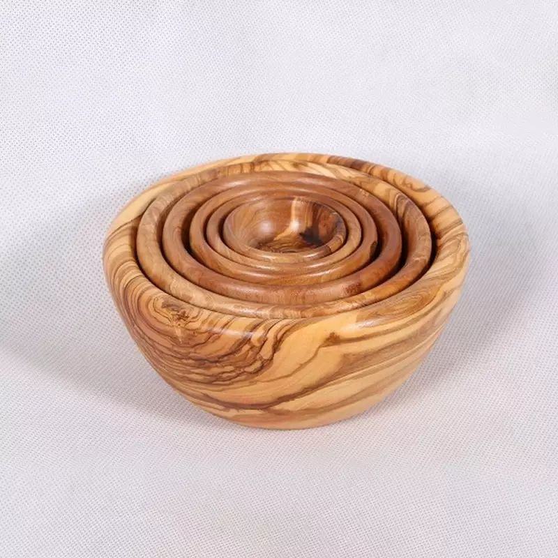 Set aus 6 Schalen aus recyceltem tunesischem Olivenholz