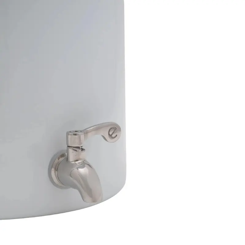 5) Reinigen Sie den Metallbehälter, den Deckel und den Hahn mit einer Bürste und Seife.