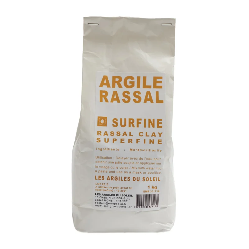 Rassal clay has the ability to bind fats and impurities in aqueous environments by absorbing them like a sponge. Since it contains no surfactants, it does not have the disadvantage, like these detergents, of stripping away the first protective layer, the hydrolipidic film present on the skin and hair, and therefore does not irritate the sebaceous glands.