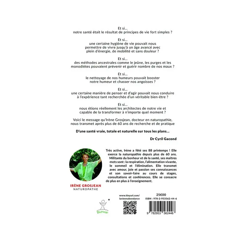 Book "La Vie en Abondance" by Irène Grosjean, a lifetime's work in audio format, 60 years of naturopathy.