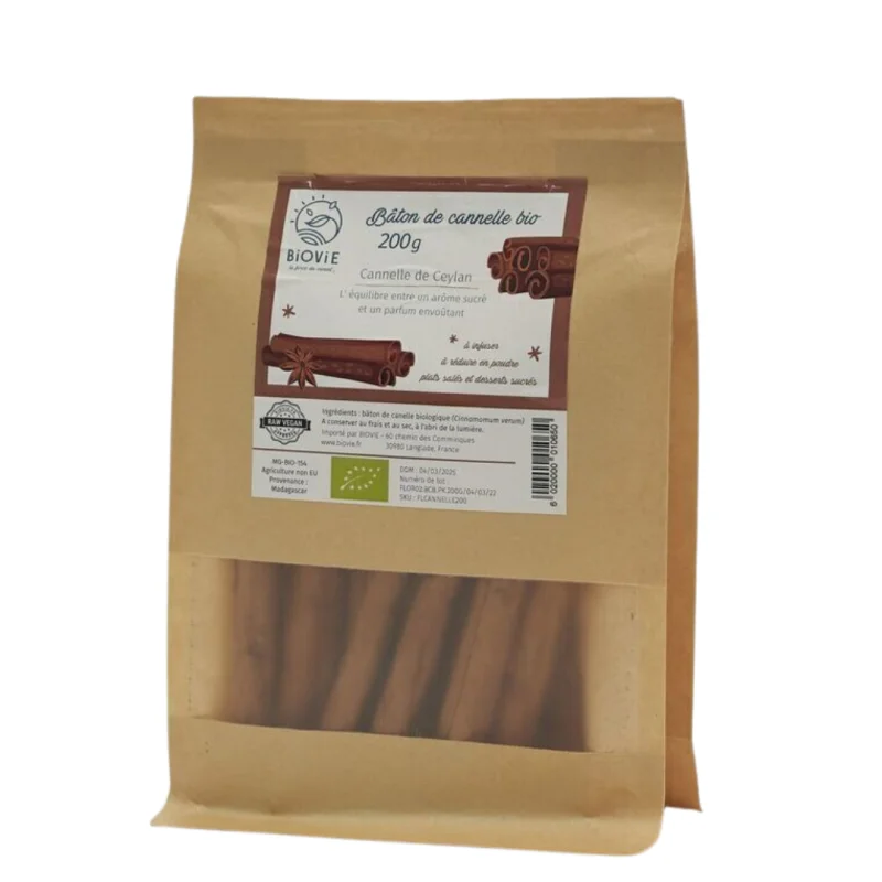 Our cinnamon is produced according to strict organic standards and goes even further: each batch is traceable, analyzed, and guaranteed to be free of pesticides and phytosanitary residues.