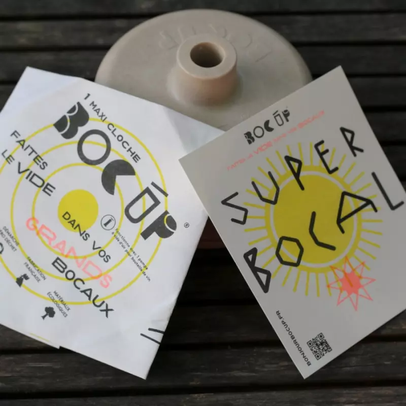 We present to you the big brother of Bocup, the MAXI BOCUP! A large format cloche for very large jars of 1 to 2L: suitable for lids of 100 mm and 110 mm. It is used in the same way as the small Bocup cloches, with the same pump and the same plug.