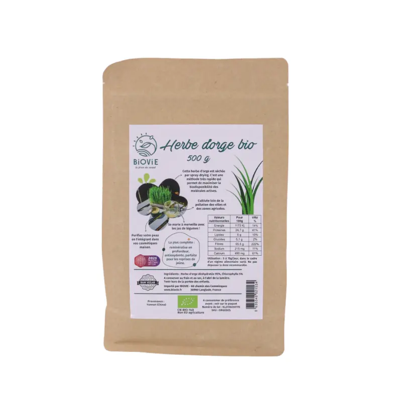 Hemos buscado durante mucho tiempo un proveedor de jugo de hierba de cebada deshidratada a baja temperatura, certificado por Ecocert y competitivo a nivel internacional - transportado por barco - con el objetivo de ofrecerte hierba de cebada a un precio asequible para todos y convertirlo en un superalimento de consumo diario.