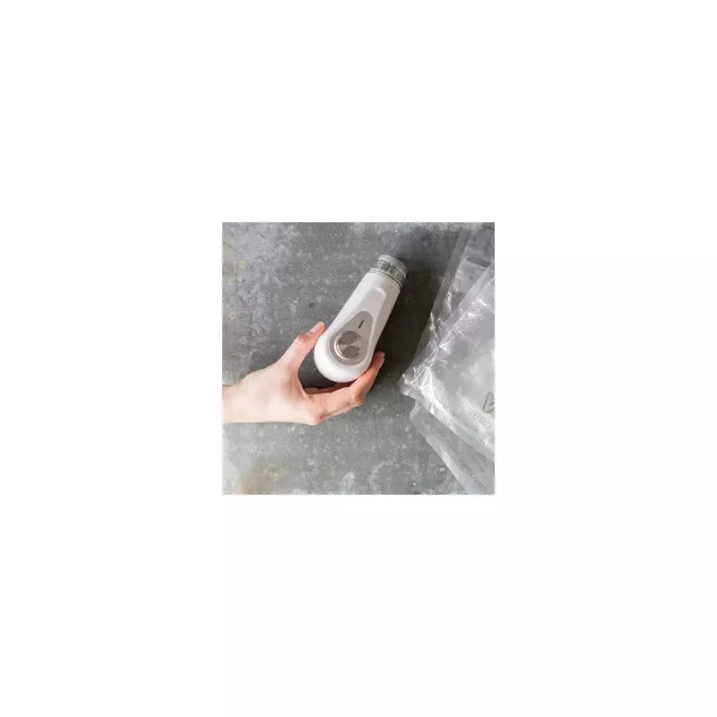 Bomba de vacío muy fácil de usar (solo un botón para presionar) y práctica por su pequeño tamaño. Si haces largas series de envasado al vacío de frascos, tal vez tu brazo se canse (¡o se ponga muy musculoso!) con una bomba manual. Por eso te ofrecemos esta bomba eléctrica que no requiere ningún esfuerzo para retirar el aire de tus recipientes.