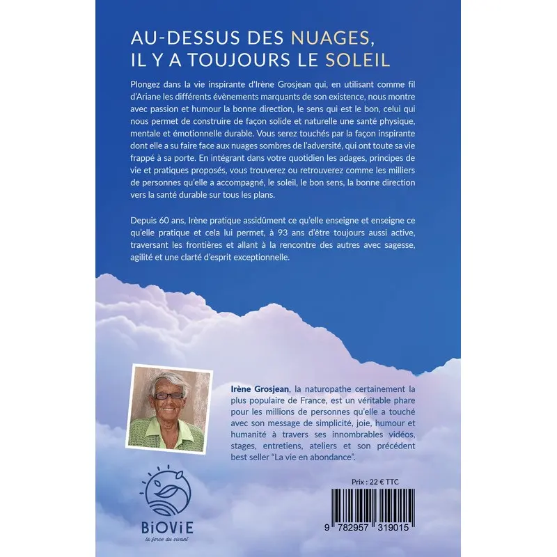 La autobiografía de la pionera de la salud natural en Francia, Irène Grosjean. Descubra a través de su historia de vida excepcional los grandes principios que la ayudaron a superar las pruebas y a recuperar el sentido común de las cosas. Una historia llena de alegría, humor y humanidad... ¡a su imagen! Edición Biovie.