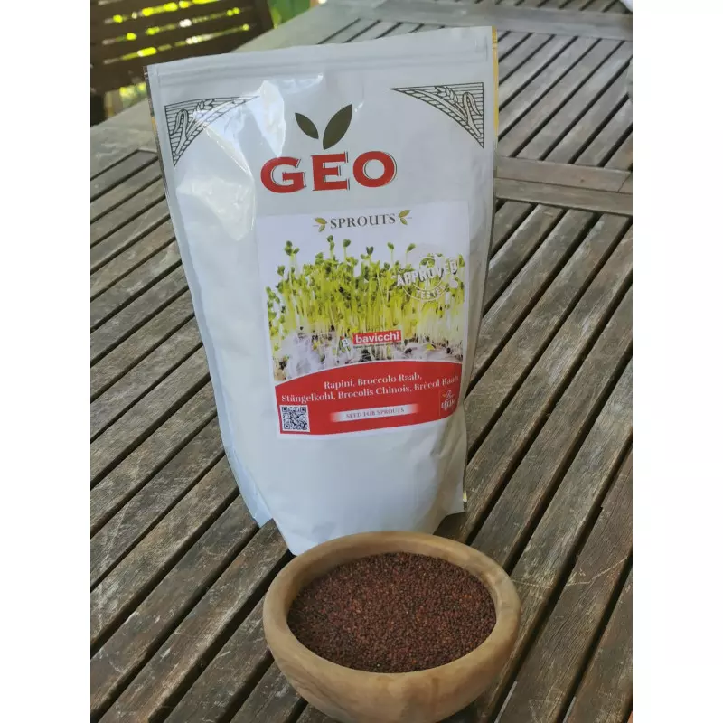 🌱 D'une saveur douce et légèrement amère, ses graines germées rappellent la saveur de la noix. Cette variété possède les qualités combinées du brocoli et de la moutarde !