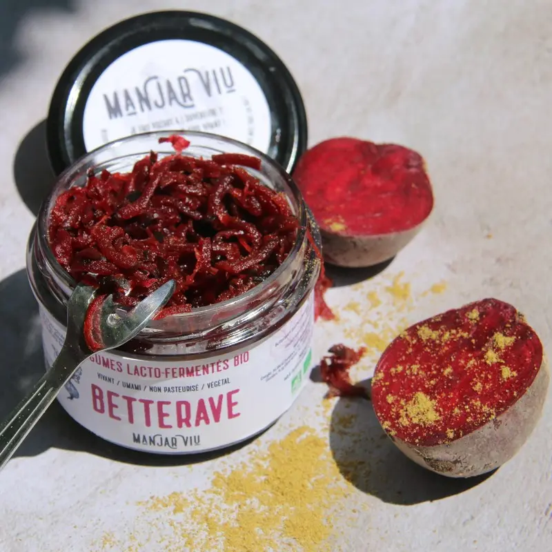 ⚛️ A base de betterave et de chou blanc lacto-fermentés provenant de l'agriculture biologique et locale, ce mélange savoureux agrémenté de cumin, a été préparé avec soin, de manière artisanale, et sans pasteurisation. Il est un moyen unique d’associer vitalité et praticité dans votre assiette.