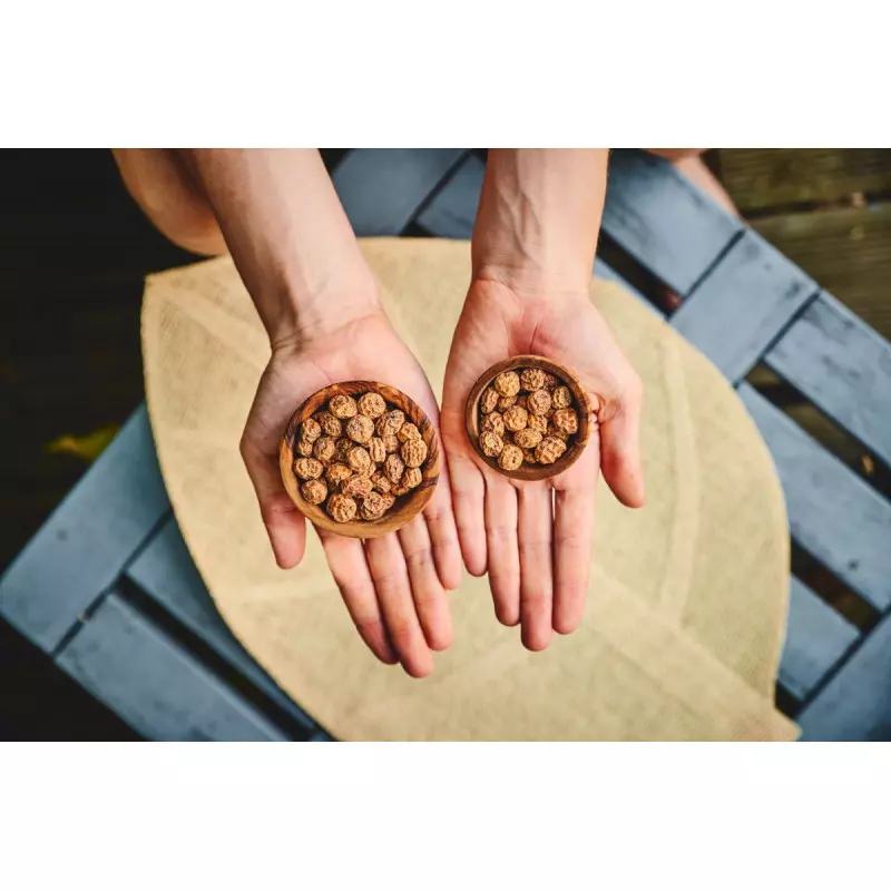 Questo tubero millenario, noto anche come "noce tigrata", è apprezzato da secoli per le sue qualità nutritive e medicinali. Si tratta del frutto della pianta erbacea rizomatosa perenne chiamata "Chufa".Cyperus esculentusGià nell'Antico Egitto ne andavano matti! Molto apprezzato nell'Africa subsahariana e in Spagna, il suo gusto inimitabile naturalmente dolce e la sua consistenza croccante e carnosa ricordano la nocciola o la mandorla.