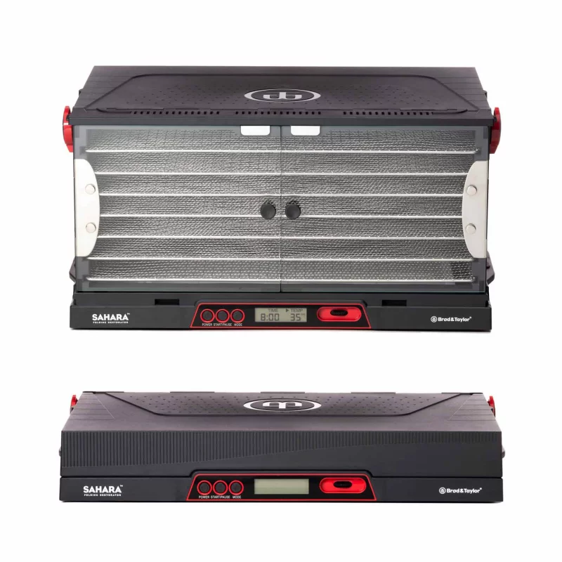 Deze opvouwbare Sahara™-voedseldroger biedt de ultieme combinatie van prestaties en gemak om je favoriete etenswaren te drogen en te bewaren. Door de rijke geschiedenis van voedseldehydratie te combineren met een volledig opvouwbaar ontwerp, profiteert deze voedseldroger van geoptimaliseerde luchtcirculatie en verwarming, evenals een modern en stijlvol design. Zodra het programma is voltooid, blijven de etenswaren op 35°C totdat je ze opbergt.
