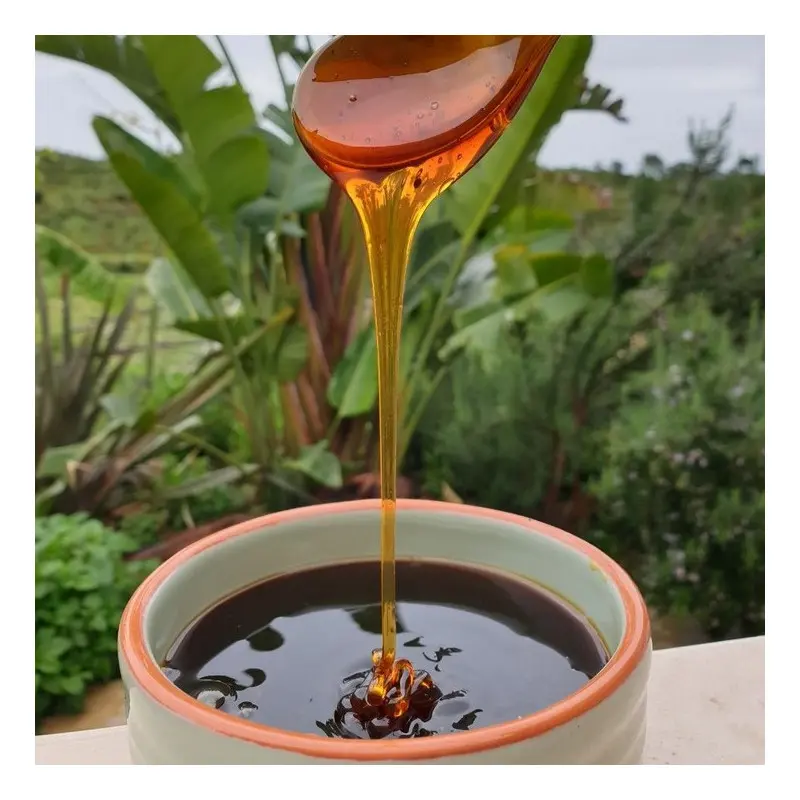 Deze vloeibare honing is vrij dik, heeft een donkere kleur met bruin-rode tinten, een subtiele bloemige geur en een sterke fruitige smaak. Zeer stroperig, het lijkt op karamel! We hebben deze honing geselecteerd vanwege zijn unieke karakter dat zich onderscheidt van traditionele honing, met zijn aroma's die in de mond blijven hangen en zijn minder zoete smaak, zal het u niet onverschillig laten.