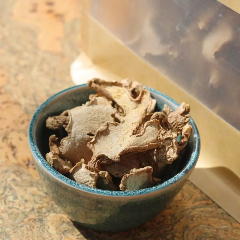 Gedroogde gember in plakjes, rauwe en biologische kwaliteit, 200 g