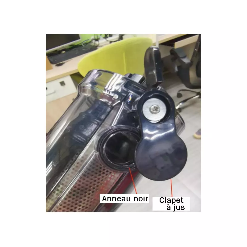 Druppelvrije klep en sluiting van de sapuitgang. Reserveonderdeel van de Juice Me Up sapcentrifuge.