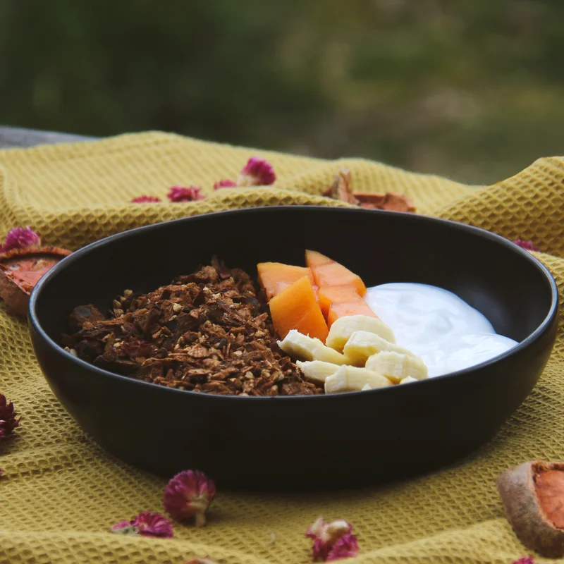 Rauwe cacao muesli is rijk aan vezels, Omega 3, ijzer en magnesium. Maar dat is nog niet alles !