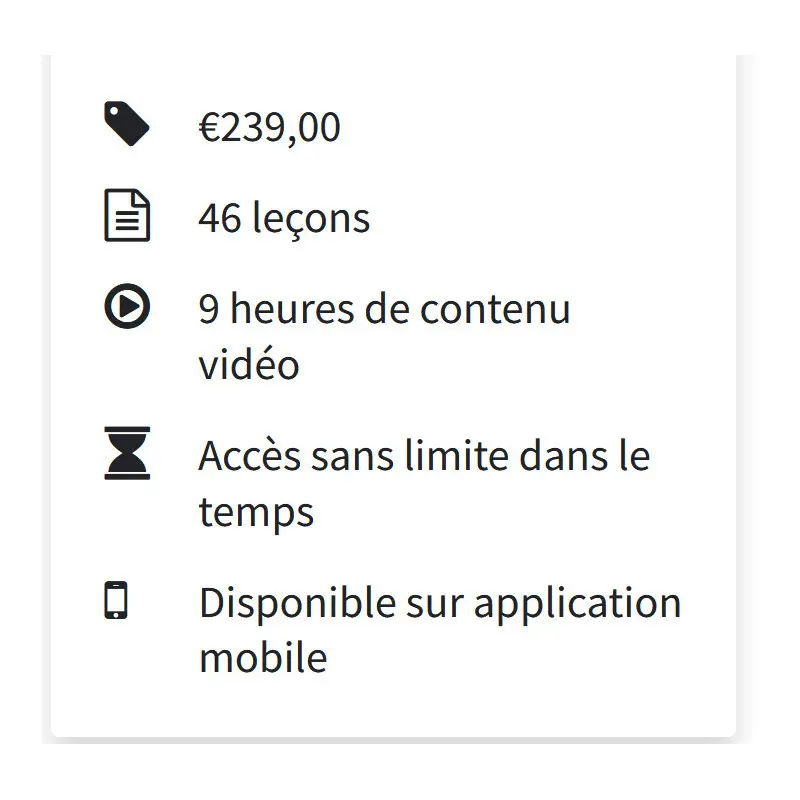 ✓ Levenslange toegang tot de cursusinhoud (zonder tijdslimiet)