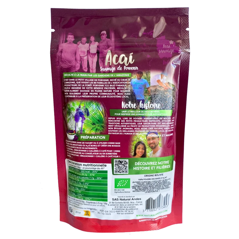 - Ingrediënten: 100% açaïbessen uit de biologische landbouw