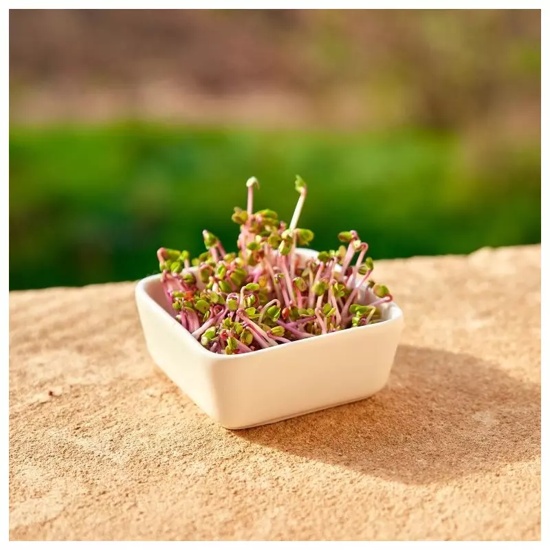 🌱 Seus pequenos brotos têm um sabor ligeiramente picante de rabanete.